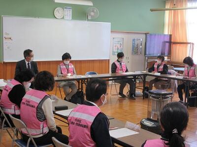 交通指導員さんから安全な登下校の仕方について話を聞いたあと、新班長への引継ぎを行いました。
