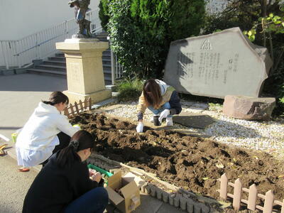 後援会の皆様が、チューリップの球根を植えてくださいました。子どもたちの喜ぶ顔を思い浮かべながら、2000個の球根を一つ一つ丁寧に植えていただきました。ありがとうございました。春には、たくさんのチューリップが咲くことを願っています。春が来るのが楽しみです!