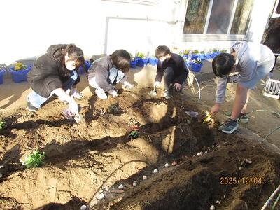 12月4日(木)に後援会の皆様、保護者の皆様による花*プロジェクトを行いました。今回は、環境委員会の児童と一緒にチューリップの球根と数種類の花苗を植えました。いつも所小のためにご協力いただき、ありがとうございます。子ども達も花の配置を考え、上手に植えていました。きれいな花を楽しむとともに、春に咲くチューリップをとても楽しみにしています。
