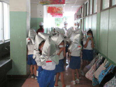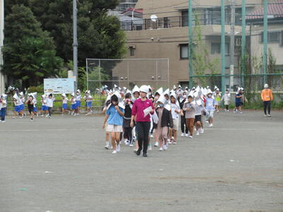 「お・か・し・も・ち」を意識して、運動場まで安全に非難することができました。