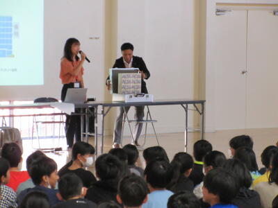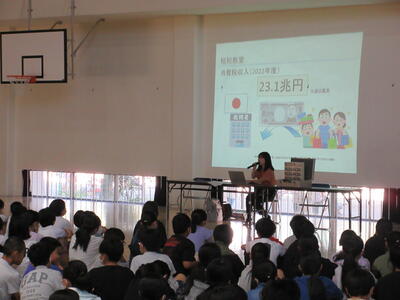 講師の方からクイズを出していただいたり1億円を見せていただいたりし、6年生は税の意義や役割を楽しみながら学びました。