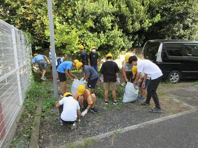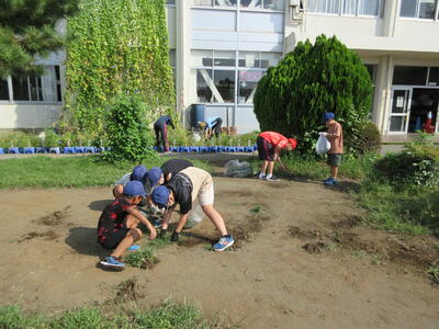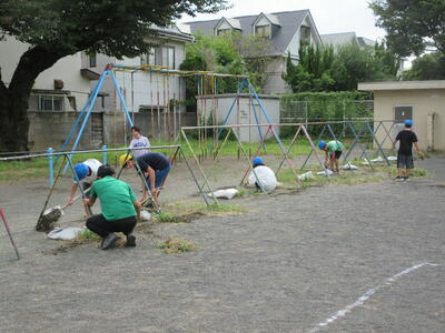 校庭やプールの周りなど、場所を分担して雑草を抜き取りました。