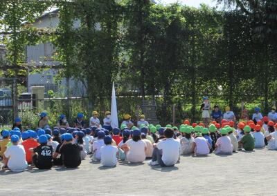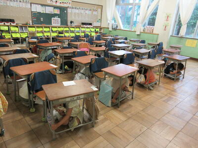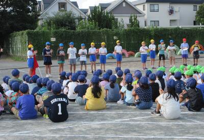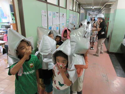 地震からの火災発生を想定した避難訓練を実施しました。「おさない・かけない・しゃべらない・もどらない・ちかづかない」を確認し、みんな真剣に行動することができました。災害はいつやってくるかわかりません。いざというときに、正しい行動がとれるように、今後も訓練を実施していきます。