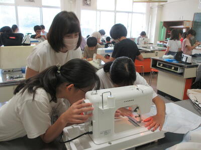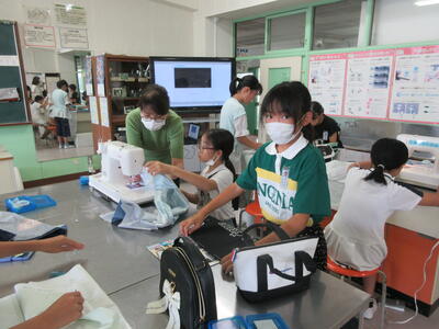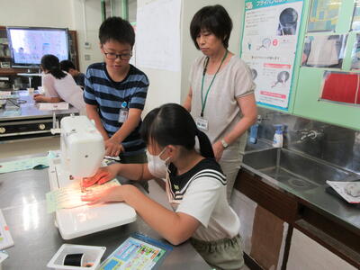 5年生は、家庭科の学習で、ミシンを使ってのエプロンづくりに取り組んでいます。