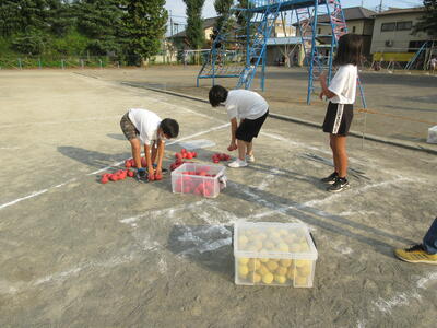 明日の運動会のために、教職員と6年生が準備作業をおこないました。