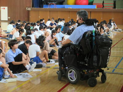 今回は、出前授業として、車いすで生活する講師の方にお話をしていただきました。