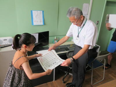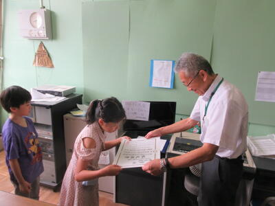7月17日(木)、硬筆展の賞状伝達が行われました。みんな立派な態度で賞状を受け取ることができました。