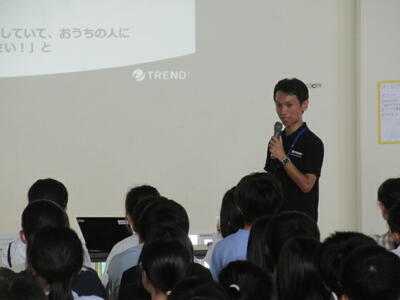 講師は情報セキュリティ企業にご勤務されている、本校PTA副会長の小峯様に務めていただきました。SNSとの付き合い方やオンラインゲームでのやりとりなど、具体的な話をしていただき、子供たちも理解を深めた様子でした。